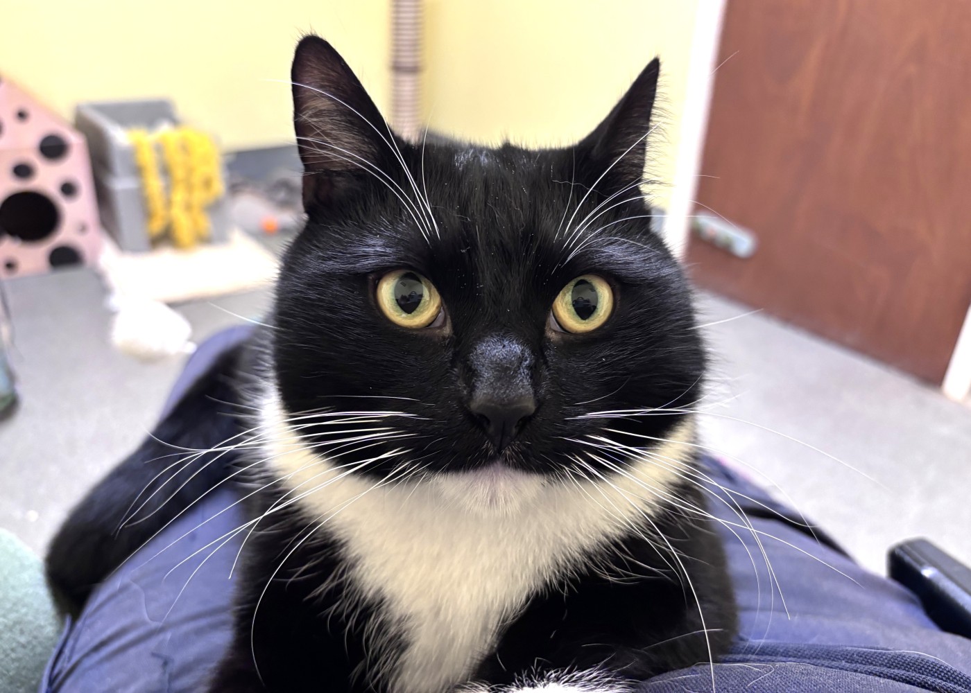 However, Oscar’s journey isn’t without its challenges. He can be temperamental at times, and sudden movements or loud noises can startle him. Because of his sensitivity, Oscar will need a calm, adult only home where he can take his time to adjust. A quiet environment, a safe space to retreat to, and short, hands off interactions will help him continue to feel secure and confident. He may feel unsettled going into a new home, but with patience and understanding, he will thrive.