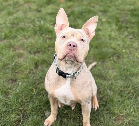 Sienna is an absolute delight for anyone who appreciates the Bully Breed and understands their unique charms and characteristics. She's great with children aged 14 and up, especially those who enjoy a lively, friendly doggy companion. Sienna is learning to keep all four paws on the ground when greeting people and is picking it up brilliantly.