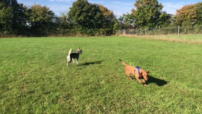 1st dog meet: The 1st dog meet is on lead so the dogs can spend time together in a controlled manner.