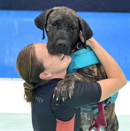 Elvis is currently having hydrotherapy to help build the strength back in his legs after being starved when he was young which is something we have been lucky enough to take him too whilst he’s been in our care! He’s been doing so well with it all and absolutely loves the water! If new owners are able to continue this in the short term it would be amazing but he has made such massive improvements that if potential new owners are not able to commit to this it won't be an issue! Just fill out an application form and we would be happy to answer any questions you have!