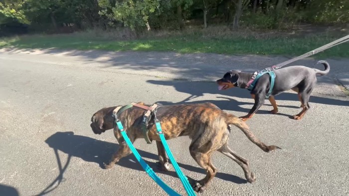 1st dog meet: The 1st dog meet is on lead so the dogs can spend time together in a controlled manner.