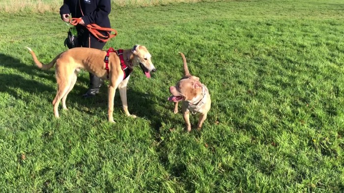 1st dog meet: The 1st dog meet is on lead so the dogs can spend time together in a controlled manner.