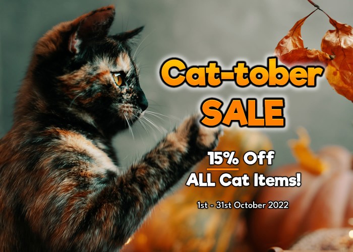 This October we are reducing the price of ALL cat related items in our pet supplies shop by a whopping 15%!