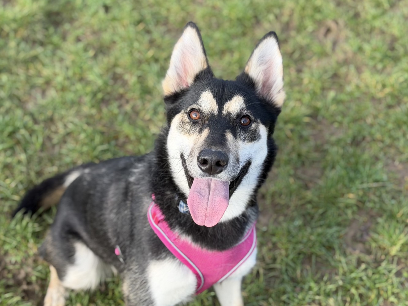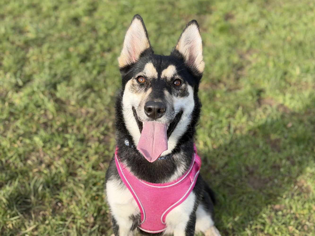 This beautiful girl you’ve come across is Daisy — our happy husky with the biggest smile and an even bigger heart. With her friendly, sociable nature, she’s the kind of dog who brightens every room (and every walk!) she steps into.