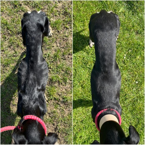 After posting Emily’s story and amazing progress on our Facebook page, it did not take long for her to find her forever family. Just one month later in April, Emily went off to her new forever home weighing a fantastic 15.5kg.
