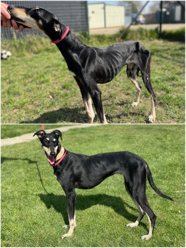 Emily came into our care in March and weighed just 11.2kg on arrival. To begin with, Emily was fed five small meals a day to ensure we did not overload her system. It was clear Emily had an amazing appetite and her neglect was clearly just through lack of food and care.