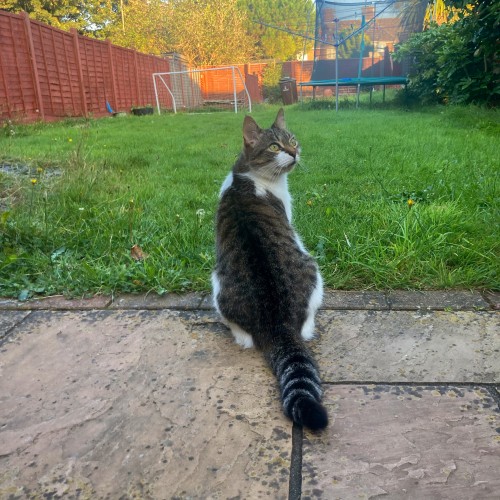 Pops likes going outside but doesn’t venture too far, he usually comes back when I call him and shake a packet of treats.