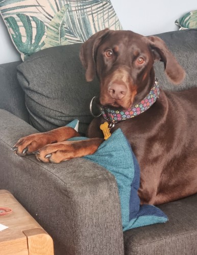 He loves his long walks in the Essex countryside with his Mum & Dad, loves new toys and bacon breakfasts (only as a treat of a weekend). He's loving with a great sense of play and fun.