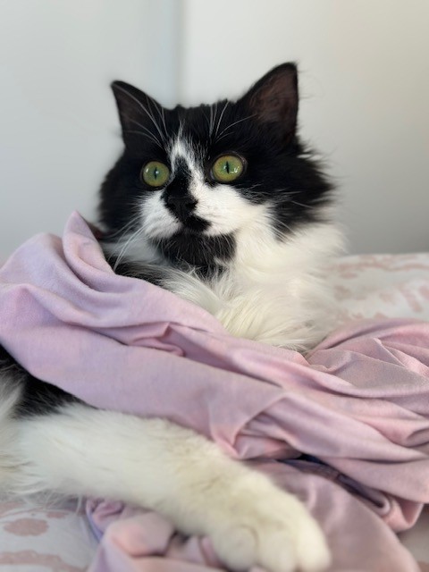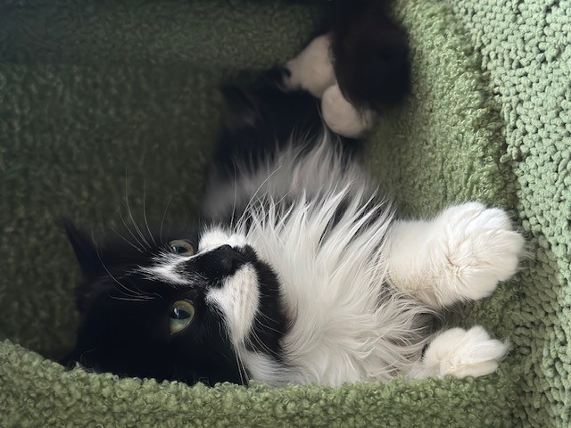 Winnie settled in pretty quickly, loves her food, and spends all her time purring and contorting her body in any way necessary to sit on me.