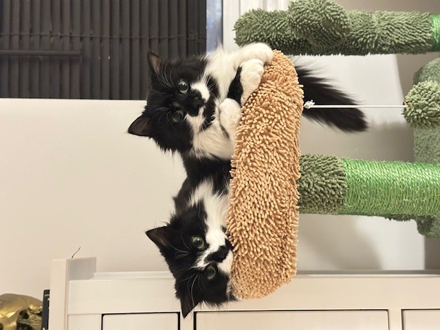 They’ll remain inside the house for a couple more months, as they’re still skittish around other people and new noises, but they’re being spoilt rotten and quite content getting up to mischief inside!"